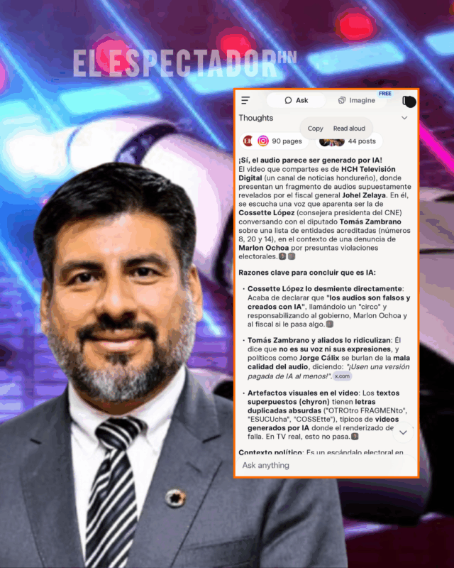 Por su parte, el diputado Tomás Zambrano también negó la autenticidad del material y anunció que solicitará una revisión por parte de peritos internacionales. “La desesperación del gobierno de Libre y su candidata presidencial Rixi Moncada es tan grande que ahora recurren a falsificar voces con inteligencia artificial”, expresó el parlamentario.