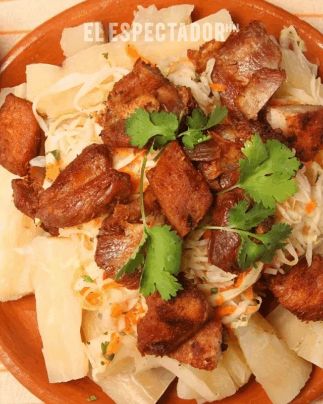 7️⃣ Yuca con chicharrón – Platillo sencillo pero contundente, donde la yuca se combina con chicharrón, encurtido y chismol. Una verdadera explosión de texturas.
