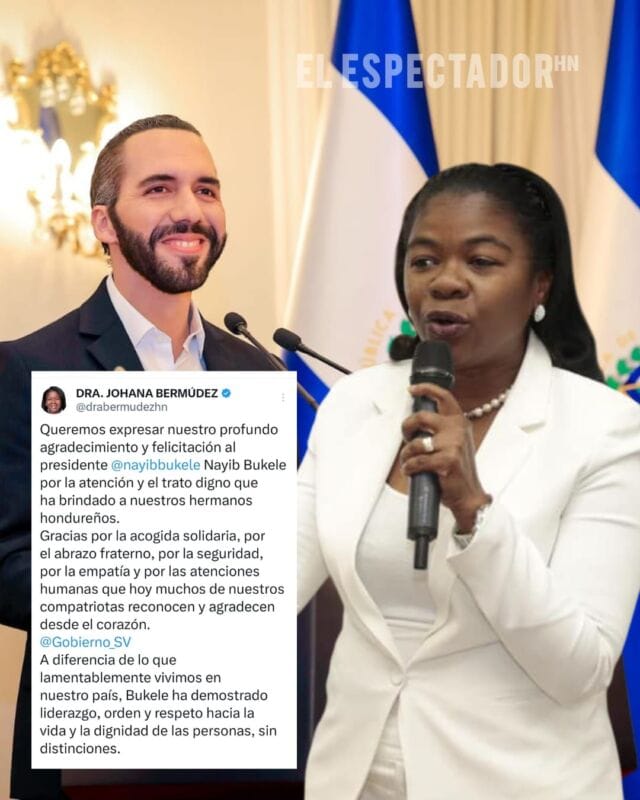 Bermúdez concluyó su mensaje con un mensaje de esperanza y gratitud hacia Bukele: “Gracias. Aquí tiene los brazos abiertos del pueblo hondureño que reconoce la buena gestión, la seguridad y la empatía que usted ha mostrado.”