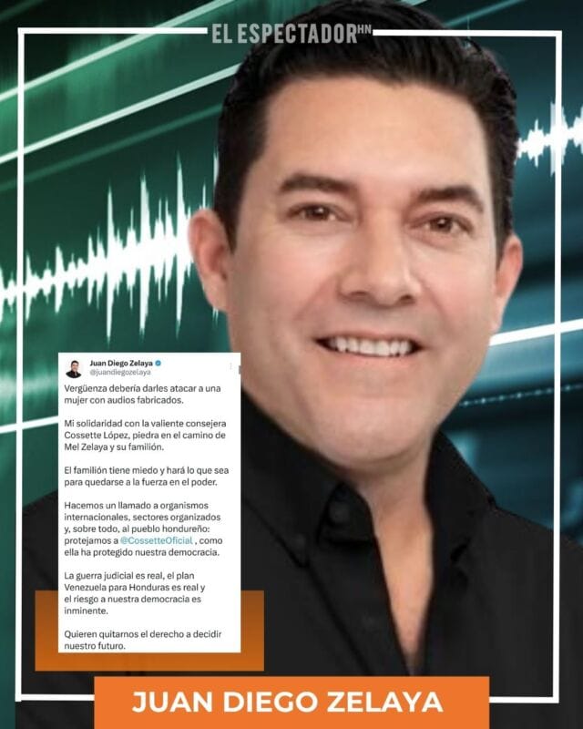 Mediante declaraciones, el candidato a la alcaldía del Distrito Central por el Partido Nacional, Juan Diego Zelaya, aseguró que los audios circulados contra la consejera Cossette López son “fabricados” con el fin de favorecer al partido Libre y mantenerlo en el poder.