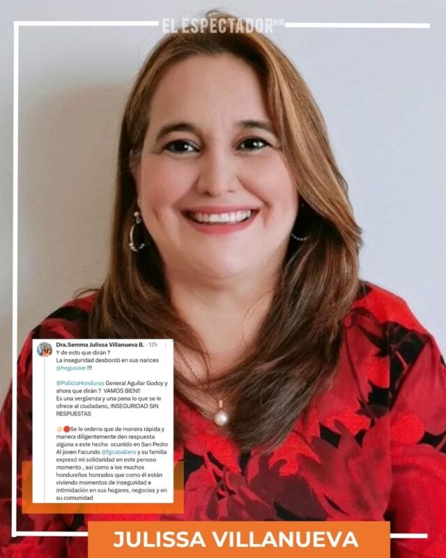 Mediante declaraciones a medios locales, la viceministra de Seguridad, Julissa Villanueva, aseguró que la inseguridad se ha desbordado en el país y exigió respuestas inmediatas al ministro de Seguridad, Gustavo Sánchez, ante el repunte de hechos violentos registrados en los últimos días.