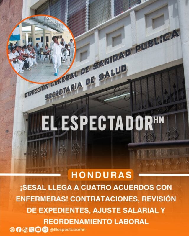 La Secretaría de Salud de Honduras Secretaría de Salud de Honduras (SESAL) y el Colegio de Enfermeras Profesionales de Honduras Colegio de Enfermeras Profesionales de Honduras (CEPH) alcanzaron cuatro acuerdos tras una jornada de diálogo que permitió destrabar el conflicto laboral del gremio de enfermería.