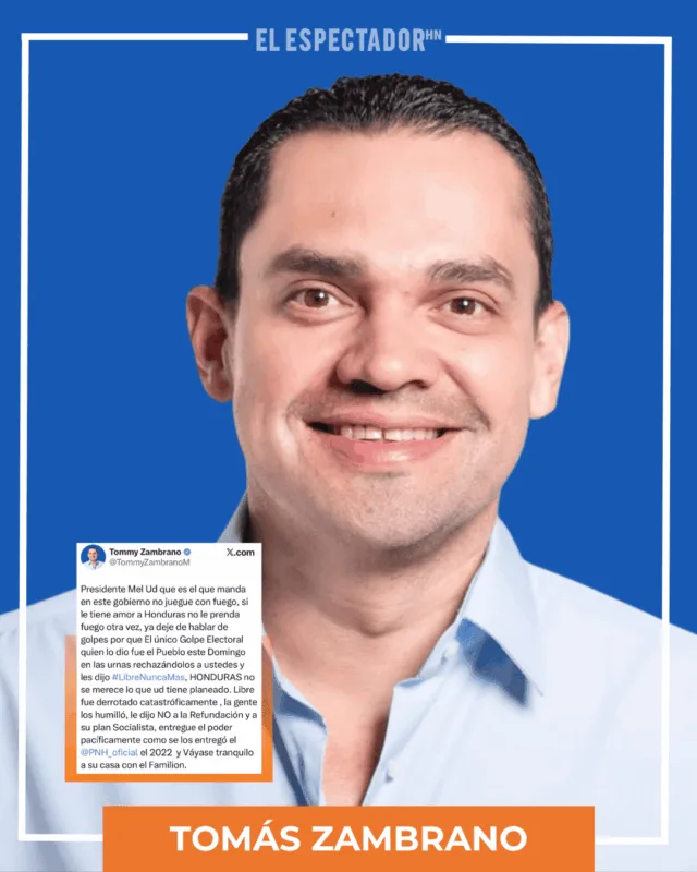 Zambrano recuerda la “humillante derrota electoral” a Mel Zelaya Tomás Zambrano, el jefe de bancada del Partido Nacional, reaccionó al