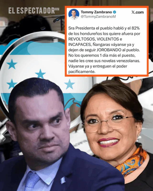 Zambrano reacciona a la denuncia de Xiomara Castro Tomás Zambrano, jefe de bancada del Partido Nacional, mediante su cuenta de