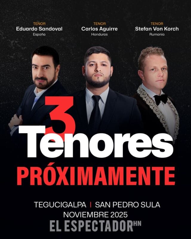Tegucigalpa y San Pedro Sula se preparan para vivir una experiencia musical única: Los Tres Tenores se presentarán en concierto con la participación especial de Eduardo Sandoval (España), Carlos Aguirre (Honduras) y Stefan Von Korch (Rumania), acompañados por la Orquesta Filarmónica de San Pedro Sula, bajo la dirección del Maestro Óscar Barahona, quien conducirá la obra Música Eterna.